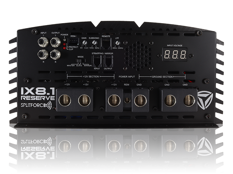 Taking all the features of its little brother, the all new IX8.1 is an absolute monster, delivering a whopping 8,000 watts of power at 1ohm mono, and an astonishing 16,000 watts when strapping a pair together. Triple power and ground connections, means the IX8.1 will really have the current flow to power any high power subwoofer out there today. You will have peace of mind with on-board fans and an integrated voltage meter, as well as the heat and current supply are under control.