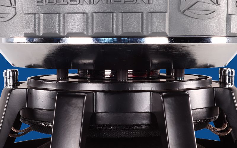 In 2007, Incriminator Audio released it's new updated models of subwoofers. One of the most important features was ADC. ADC or “Air Driven Cooling” is a method of cooling the outside of the voice coil that is accomplished by using six column spacers that separate the basket from the motor assembly. When power is applied the coil begins to move in the gap and air is pushed through the pole vent and around the coil. This method has been shown in our tests to cool the voice coil over 30 degrees Fahrenheit in higher power handling applications.